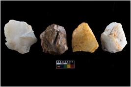 | Description / विवरण | There are n-4 of intact cores. Out of them 1 is made up Chalcedony and 3 are made up of Chert.There are multidirectional irregular dominant scar pattern on both dorsal and ventral face of the cores. |