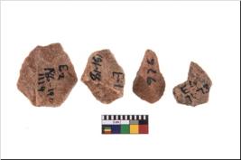 | Description / विवरण | It made up of a short flakes with sides trimmed. Marks of secondary flaking are present on the both the faces. It rained pebbly cortex on one side and irregular thin edge on the other. The dorsal is relatively flat. A patch of cortex near the section which is slanting to the dorsal .It is sub rectangular in shaped. |