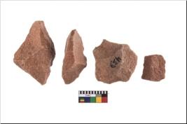 | Description / विवरण | It made up of a short flakes with sides trimmed. Marks of secondary flaking are present on the both the faces. It rained pebbly cortex on one side and irregular thin edge on the other. The dorsal is relatively flat. A patch of cortex near the section which is slanting to the dorsal .It is sub rectangular in shaped. |
