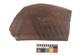 | Description / विवरण | Specimen of potsherd with black decorative geometric painting. Type Black on Red Ware . |