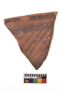 | Description / विवरण | Specimen of black on red ware with decorative geometric Outcurved lines painting. |
