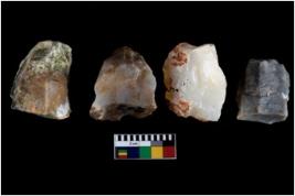 | Description / विवरण | There are n-4 of intact flake cores. Out of them 1 is made up Chalcedony and 3 are made up of Chert.There are multidirectional irregular dominant scar pattern on both dorsal and ventral face of the cores. |