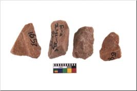 | Description / विवरण | It made up of a short flakes with sides trimmed. Marks of secondary flaking are present on the both the faces. It rained pebbly cortex on one side and irregular thin edge on the other. The dorsal is relatively flat. A patch of cortex near the section which is slanting to the dorsal .It is sub rectangular in shaped. |