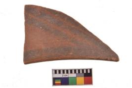 | Description / विवरण | Specimen of black on red ware with decorative geometric Two out curved lines painting. |