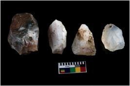 | Description / विवरण | There are n-4 of intact flake cores. Out of them 1 is made up Chalcedony and 3 are made up of Chert.There are multidirectional irregular dominant scar pattern on both dorsal and ventral face of the cores. |