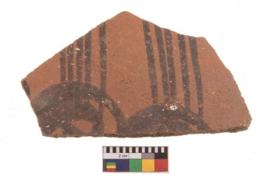 | Description / विवरण | Specimen of potsherd with black decorative geometric painting. Type Black on Red Ware . |