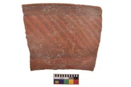 | Description / विवरण | Specimen of black on red ware with decorative geometric Oblique lines set in two horizontal bands painting. |