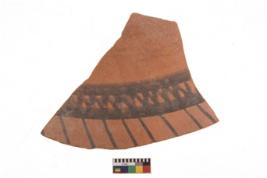 | Description / विवरण | Specimen of potsherd with black decorative geometric painting. Type Black on Red Ware . |