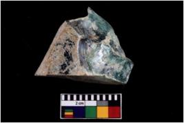 | Description / विवरण | Specimen has glossy white surface with blakish blue painting over it. |