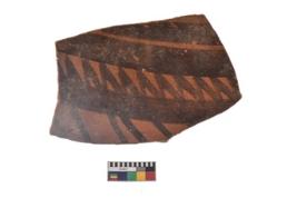 | Description / विवरण | Specimen of a potsherd with black decorative geometric painting. |