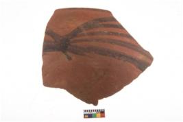 | Description / विवरण | Specimen of potsherd with black decorative geometric painting. Type Black on Red Ware . |