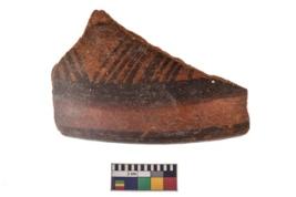 | Description / विवरण | Specimen of a potsherd with black decorative geometric painting. |