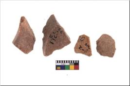 | Description / विवरण | It made up of a short flakes with sides trimmed. Marks of secondary flaking are present on the both the faces. It rained pebbly cortex on one side and irregular thin edge on the other. The dorsal is relatively flat. A patch of cortex near the section which is slanting to the dorsal .It is sub rectangular in shaped. |