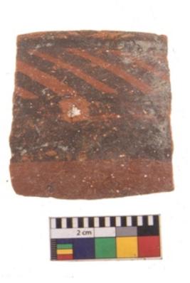 | Description / विवरण | Specimen of potsherd with black decorative geometric painting. Type Black on Red Ware . |