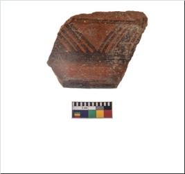 | Description / विवरण | Specimen of a potsherd with black decorative geometric painting. |