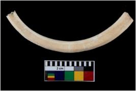 | Description / विवरण | Fragment of an undecorated shell bangle. It is creamish in colour and rectangular in cross section. |