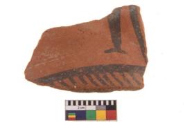 | Description / विवरण | Specimen of potsherd with black decorative geometric painting. Type Black on Red Ware . |