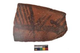 | Description / विवरण | Specimen of a potsherd with black decorative geometric painting. |