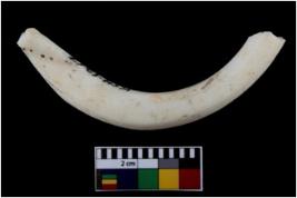 | Description / विवरण | Fragment of an undecorated shell bangle. It is creamish in colour and rectangular in cross section. |