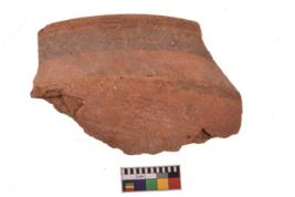 | Description / विवरण | Specimen of black on red ware with decorative geometric Out curved lines painting. |