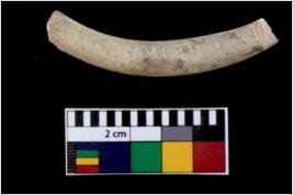 | Description / विवरण | Fragment of an undecorated shell bangle. It is creamish in colour and rectangular in cross section. |