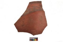 | Description / विवरण | Specimen of black on red ware with decorative geometric A row of arches over a horizontal band painting. |