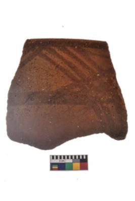 | Description / विवरण | Specimen of a potsherd with black decorative geometric painting. |