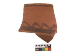 | Description / विवरण | Specimen of potsherd with black decorative geometric painting. Type Black on Red Ware . |