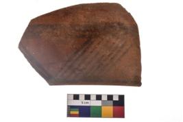 | Description / विवरण | Specimen of a potsherd with black decorative geometric painting. |