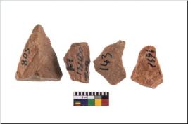 | Description / विवरण | It made up of a short flakes with sides trimmed. Marks of secondary flaking are present on the both the faces. It rained pebbly cortex on one side and irregular thin edge on the other. The dorsal is relatively flat. A patch of cortex near the section which is slanting to the dorsal .It is sub rectangular in shaped. |