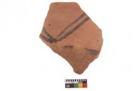 | Description / विवरण | Specimen of potsherd with black decorative geometric painting. Type Black on Red Ware . |