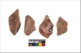 | Description / विवरण | It made up of a short flakes with sides trimmed. Marks of secondary flaking are present on the both the faces. It rained pebbly cortex on one side and irregular thin edge on the other. The dorsal is relatively flat. A patch of cortex near the section which is slanting to the dorsal .It is sub rectangular in shaped. |