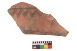 | Description / विवरण | Specimen of potsherd with black decorative geometric painting. Type Black on Red Ware . |