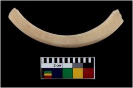 | Description / विवरण | Fragment of an undecorated shell bangle. It is creamish in colour and rectangular in cross section. |