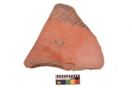 | Description / विवरण | Specimen of black on red ware with decorative geometric Oblique lines painting. |