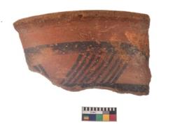 | Description / विवरण | Specimen of a potsherd with black decorative geometric painting. |