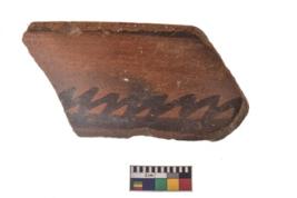| Description / विवरण | Specimen of a potsherd with black decorative geometric painting. |