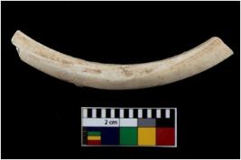 | Description / विवरण | Fragment of an undecorated shell bangle. It is creamish in colour and rectangular in cross section. |