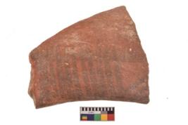 | Description / विवरण | Specimen of black on red ware with decorative geometric Oblique lines painting. |