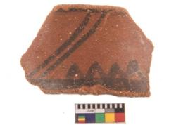 | Description / विवरण | Specimen of potsherd with black decorative geometric painting. Type Black on Red Ware . |