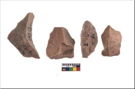 | Description / विवरण | It made up of a short flakes with sides trimmed. Marks of secondary flaking are present on the both the faces. It rained pebbly cortex on one side and irregular thin edge on the other. The dorsal is relatively flat. A patch of cortex near the section which is slanting to the dorsal .It is sub rectangular in shaped. |