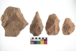 | Description / विवरण | There are n-4 of utilized flake cores. There are multidirectional irregular dominant scar pattern on both dorsal and ventral face of the cores. |