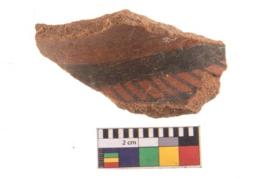 | Description / विवरण | Specimen of potsherd with black decorative geometric painting. Type Black on Red Ware . |