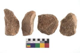 | Description / विवरण | There are n-4 of utilized flake cores. There are multidirectional irregular dominant scar pattern on both dorsal and ventral face of the cores. |