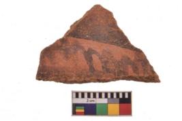 | Description / विवरण | Specimen of black on red ware with decorative geometric A row of arches over a horizontal band painting. |
