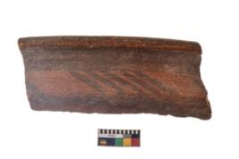 | Description / विवरण | Specimen of a potsherd with black decorative geometric painting. |