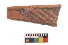 | Description / विवरण | Specimen of potsherd with black decorative geometric painting. Type Black on Red Ware . |
