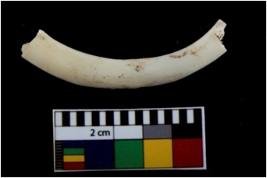 | Description / विवरण | Fragment of an undecorated shell bangle. It is creamish in colour and rectangular in cross section. |