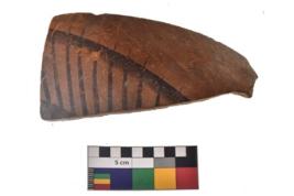 | Description / विवरण | Specimen of a potsherd with black decorative geometric painting. |