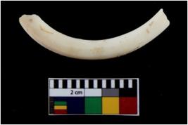| Description / विवरण | Fragment of an undecorated shell bangle. It is creamish in colour and rectangular in cross section. |